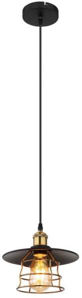 Függeszték fém fekete matt, fém, fém fekete matt, kábel PVC fekete, ø: 220mm, H: 1500mm, fényforrás nélkül szállítva 1x E27 60W 230V