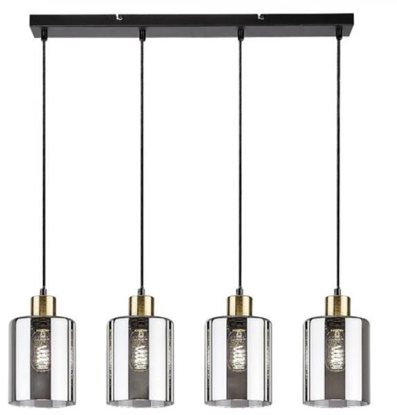 A romantikus stílust képviselő Perez négyes függeszték elegáns választás a nappaliba, az étkezőbe vagy a hálószobába. A fémből készült, matt fekete lámpát színezett üvegbúrák egészítik ki, és hosszú, téglalap alakú dísztalp segítségével rögzíthető a mennyezetre. A lámpafejek sorban, egymás mellett, azonos magasságban függnek. Az alul nyitott, henger alakú