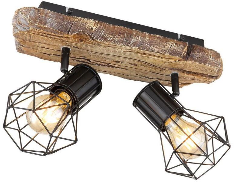 Spotlámpa 60W, E27 foglalat, Jellemző anyag: fém, nem tartalmaz fényforrást, 230V, Méret: 385mm x 120mm x 230mm (Hosszúság x Szélesség x Magasság), 54017W-2 Spotlámpa fém fekete, műanyag fa megjelenés, fém fekete, HxSzxM: 385x120x230mm, fényforrás nélkül szállítva 2x E27 60W 230V