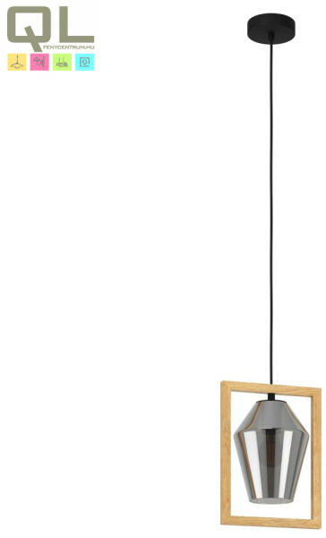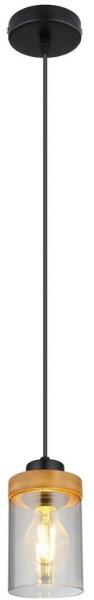 Függeszték fém fekete matt, fa sötétbarna, üveg füstszínű búra, ø: 100mm, H: 1500mm, fényforrás nélkül szállítva 1x E27 40W 230V