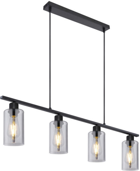 Függeszték matt fekete fém váz, füstszínű üvegekkel. HxSZxM:980x100x1200, exkl. 4xE27 60W 230V