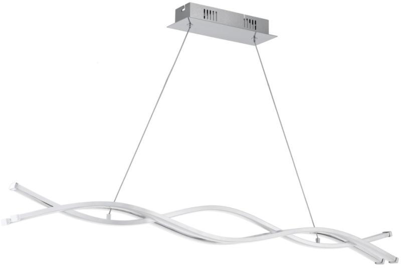 Rövid ismertető Ezt a Lasana 2 hármas függesztett lámpát az Eglo gyártja. A fényt három hullám alakú 1000 mm hosszú, egymástól eltolt LED fénysáv biztosítja. Burkolata króm színű acél alapból és fehér színű műanyagból áll. A hullámok szélessége 80 mm, a maximális belógása pedig 1200 mm. A belógás magasságát te állíthatod: ha magasabbra szeretnéd húzni, a