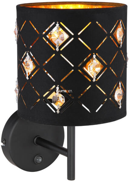Falikar matt fekete fém váz, textil ernyő fekete-arany színben, akril-kristály dekorral. SzxMxH 150x260x190. fényforrás nélkül 1XE14 40W, 230V