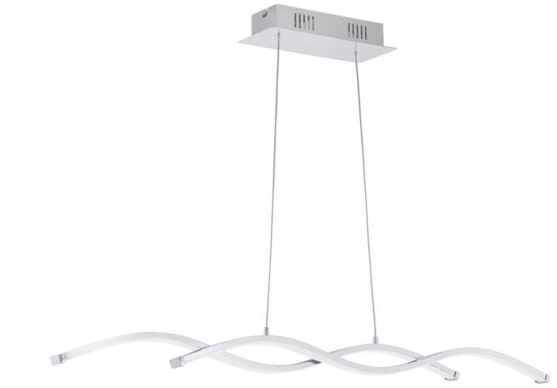Rövid ismertető Ezt a Lasana 2 kettes függesztett lámpát az Eglo gyártja. A fényt két hullám alakú 870 mm hosszú, egymástól eltolt LED fénysáv biztosítja. Burkolata króm színű acél alapból és fehér színű műanyagból áll. A hullámok szélessége 80 mm, a maximális belógása pedig 1200 mm. A belógás magasságát te állíthatod: ha magasabbra szeretnéd húzni, a fele