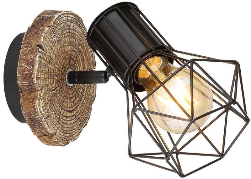 Spotlámpa 60W, E27 foglalat, Jellemző anyag: fém, nem tartalmaz fényforrást, 230V, Méret: 130mm x 185mm (Hosszúság x Szélesség x Magasság), 54017W-1 Spotlámpa fém fekete, műanyag fa megjelenés, fém fekete, SZxM: 130x185mm, AL: 195mm, fényforrás nélkül szállítva 1x E27 60W 230V