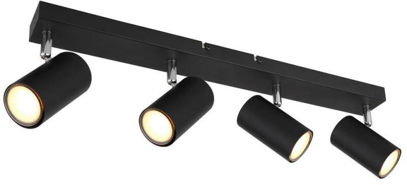 Spotlámpa 35W, GU10 foglalat, Jellemző anyag: fém, Jellemző szín: fekete matt, nem tartalmaz fényforrást, 230V, Méret: 560mm x 60mm x 120mm (Hosszúság x Szélesség x Magasság), 57911-4B Spotlámpa fém fekete matt, fém fekete matt, krómozott, HxSzxM: 560x60x120mm, fényforrás nélkül szállítva 4x GU10 35W 230V