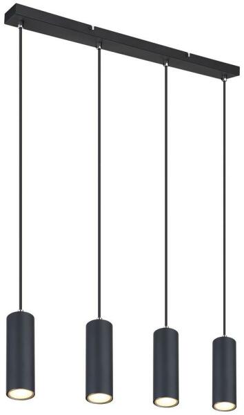 Függesztőlámpa fém fekete matt, fém fekete matt, kábel PVC fekete, HxSzxM. : 650x60x1200mm, fényforrás nélkül szállítva 4x GU10 35W 230V