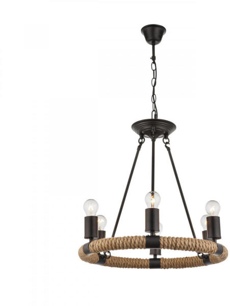 Vidéki stílus képviselője ez a csillár, mely az ULLEU nevet kapta. A lámpa egyedisége az anyagösszetételében rejlik. A kerek váz kenderkötélből, a többi rész pedig metál fekete fémből készült. Ez a kombináció teszi nagyon egyedivé ezt a modellt. Foglalata 6xE27 60 W. Javasoljuk a LED fényforrás használatát a választható színhőmérséklete, az alacsony fogyasztás,