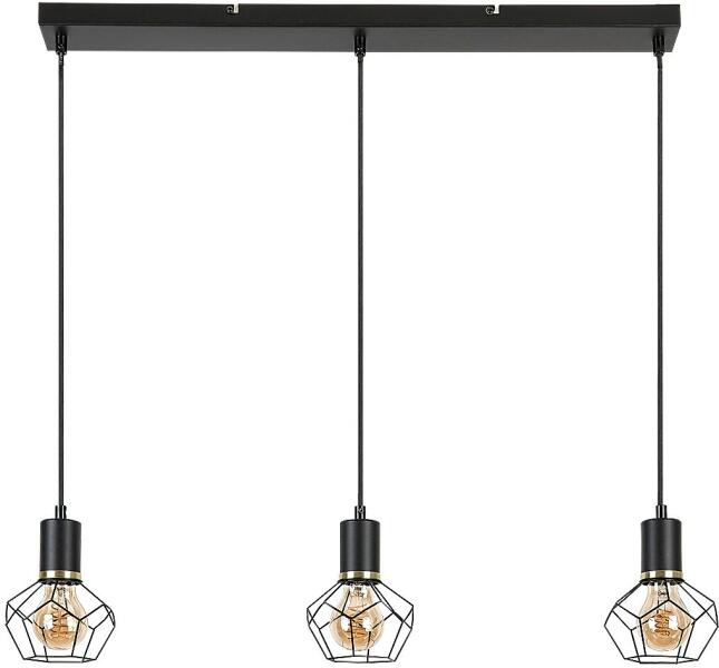 A teljes egészében fémből készült, matt fekete lámpa gyémánt formára emlékeztető, rácsos búrákkal egészül ki, és hosszú, téglalap alakú dísztalp segítségével rögzíthető a mennyezetre. A lámpafejek sorban, egymás mellett, azonos magasságban helyezkednek el. Mivel a búrákon keresztül teljes egészében láthatóak a fényforrások, ehhez a modellhez érdemes a hagyo
