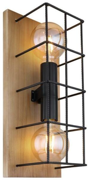 Falikar világosbarna fa alaplap, fekete acél háló búrával. SzxM:180x430, AL:165, fényforrás nélkül 2xE27 60W 230V