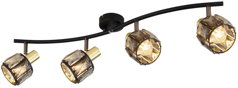 Spotlámpa matt fekete fém, matt arany színű fém, füst színű üvegkristályok, mozgatható, HxSzxM: 700x315x180mm, 4x E14 40W 230V, fényforrás nélkül szállítva