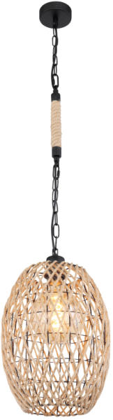 Függeszték matt fekete fém váz, barna kenderkötéllel körbefonva. Ø:240, H:1350, exkl. 1xE27 60W 230V