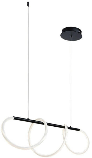 A modern stílusú Montema függeszték egyedi megjelenésével és nagy fényerejével remek választás lehet a nappaliba, az étkezőbe vagy hálószobába. Ezt a modellt elsősorban azoknak ajánljuk, akik kedvelik a meglepő és kreatív formavilágú lámpákat. A fémből, fekete színben, fehér szilikonbúrával készült Montema a tartókábelekre függesztett vízszintes rúdból, és a
