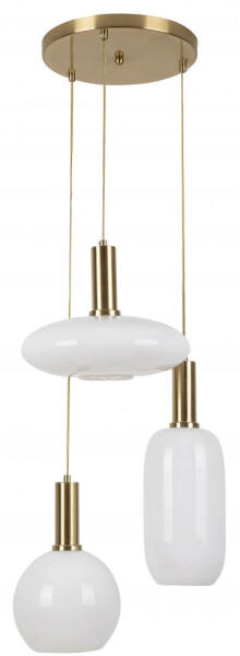 A klasszikus stílus képviselői közé tartozó Sinopia hármas függeszték nappalink vagy hálószobánk berendezésének elegáns, egyszersmind figyelemfelkeltő darabja lehet. Az aranyszínű lámpatesthez eltérő magasságban függő lámpafejek kapcsolódnak, amelyeket különböző formájú, opál üvegbúrák borítanak. Az egyik hosszúkás, palack formájú, a másik gömb, a harmadi