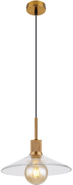 Függeszték matt sárgaréz váz, átlátszó üveg búrával, PVC kábellel. Ø:280, H:1200, exkl. 1xE27 60W 230V