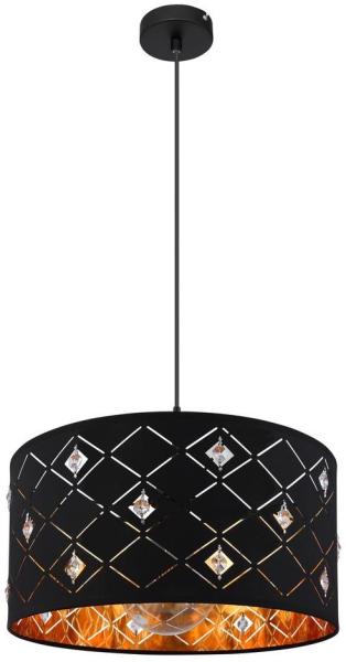 Függeszték matt fekete fém váz, textil ernyő fekete-arany színben, akril-kristály dekorral. Ø:400, H:1400, exkl. 1xE27 60W 230V