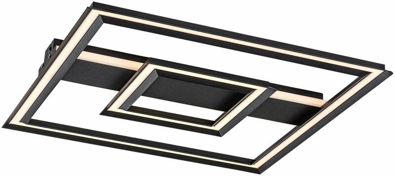 A modern stílusú Sidona mennyezeti lámpa jelentős fényerejével és vagány, szögletes formáival remek választás egy tágasabb nappaliba vagy hálószobába is. A fémből készült, fekete lámpa két eltérő nagyságú, négyzet alakú elemből áll, a lámpatestet fehér műanyagbúra egészíti ki. A Sidona a G energiaosztályba tartozó beépített LED fényforrással rendelkezik, a