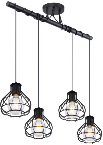 Függeszték matt fekete fém váz, matt fekete fém drótbúrákkal. HxSZxM:800x180x1000, exkl. 4xE27 60W 230V