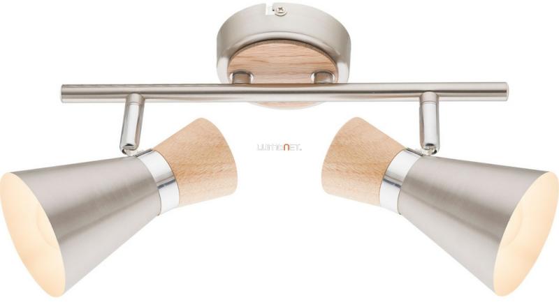 Mennyezeti lámpa, fa, nikkel matt, króm, Hosszúság x Magasság: 300x160 mm, Foglalat típusa: 2xE14, 25W, 230V. A lámpatest a következő energiaosztályú égőkkel tud működni: A++, A+, A, B, C, D, E.
