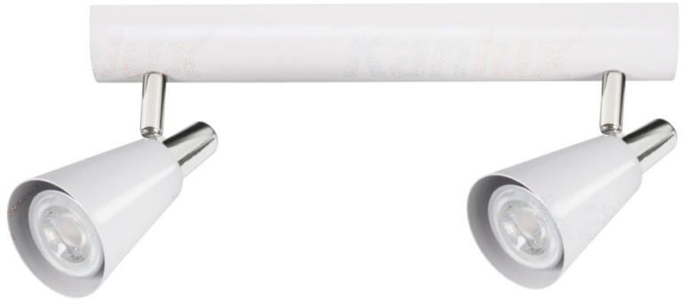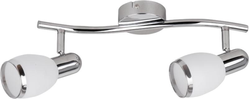 Rábalux 6061 Elite Spotlámpa Modern megjelenésű mennyezeti spotlámpa 2 db foglalattal. 34 centiméter széles, króm színű, fémből készített lámpatest és pozícionálható üveg lámpabúrák. A lámpatest E14-es foglalatkialakítású, max. 2x 40W teljesítményű energiatakarékos fényforrásokkal is használható. Modern megjelenésű mennyezeti spotlámpa 2 db foglalattal. 34 cm