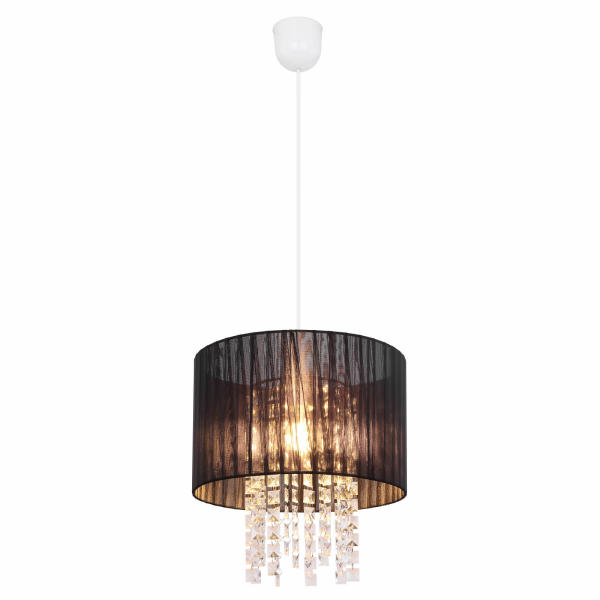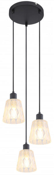 A Jarina hármas függeszték klasszikus stílusával hagyományos berendezésű nappalink, étkezőnk vagy konyhánk tökéletes kiegészítője lehet. A fémből készült, fekete lámpatestet átlátszó, harang alakú üvegbúrák egészítik ki, amelyek eltérő magasságban függnek a textilből készült tartókábeleken. A lámpa nagyméretű, kerek dísztalp segítségével rögzíthető