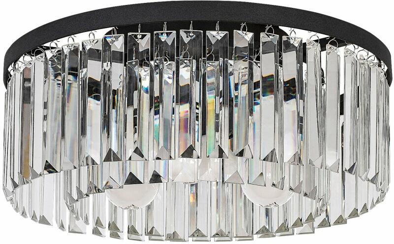 A klasszikus stílusú, elegáns Eloisa mennyezeti lámpa nappalink vagy hálószobánk berendezésének hangsúlyos darabja lehet. Elsősorban azoknak ajánljuk, akik kedvelik a csillogó, látványos modelleket. A fémből készült, fekete színű lámpatestet átlátszó üvegfüggők egészítik ki, amelyek körben függönyként takarják a fényforrást, és csillárszerű megjelenést köl