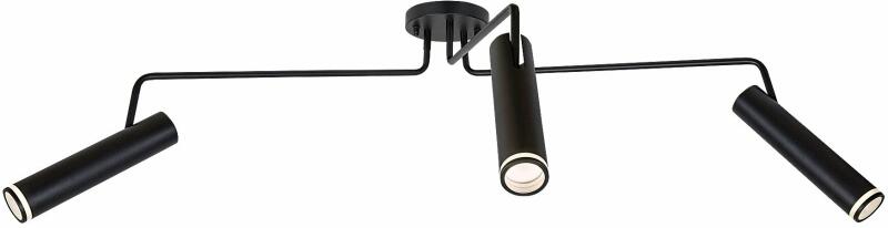 A modern Senobia hármas mennyezeti lámpa jellegzetes darabja lehet a nappali, a hálószoba vagy a dolgozószoba berendezésének. A lámpa alumíniumból, fekete színben készül, és kisméretű, kerek dísztalp segítségével rögzíthető a mennyezetre. A kis átmérőjű, henger formájú lámpafejek a dísztalphoz rögzített karok végein helyezkednek el, és fehér akrilbúrák egész