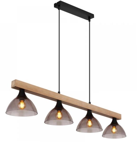 Vintage stílusú beltéri függeszték lámpa az Eglo gyártótól. Fekete acél és fa szerkezet. 1x max 40W, E27. A csomag az égőt nem tartalmazza.