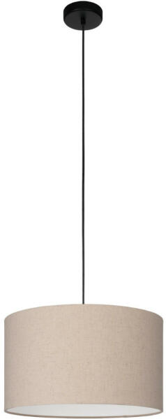 Fekete színű fém vázas függeszték natúr színű textil búrával, E27-es foglalattal.