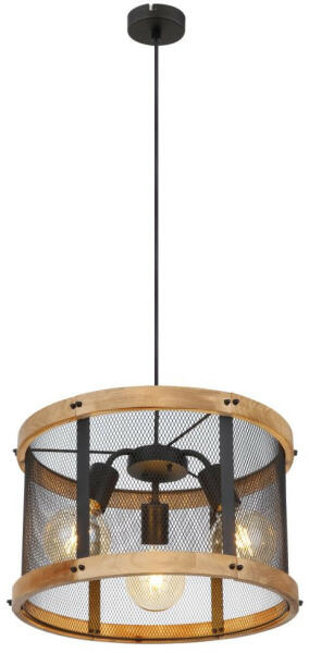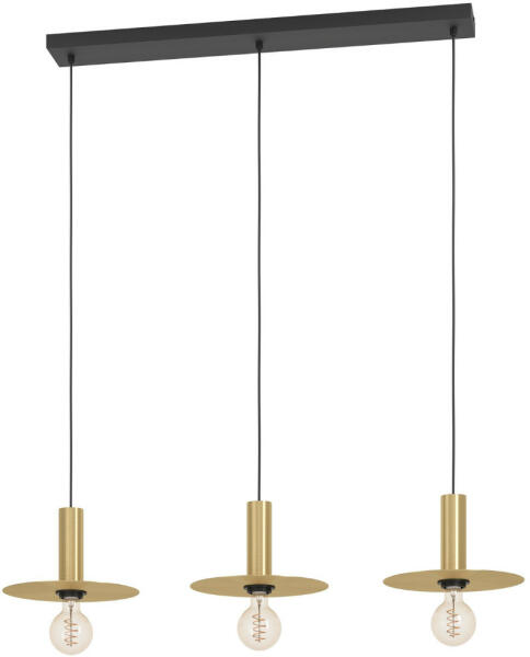 Fekete színű fém vázas függeszték sárgaréz színű fém búrával, E27-es foglalattal.