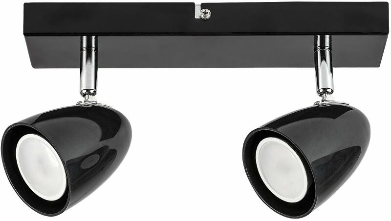 Rábalux 73017 Perico Beltéri lámpa Mennyezeti lámpa fekete, fekete GU10 2X MAX 5, IP20 A modern stílusú Perico kettes mennyezeti lámpát elsősorban a nappaliba, a hálószobába vagy a dolgozószobába ajánljuk. A fémből készült fekete színű lámpát fényes fekete műanyagbúrák egészíti ki, és téglalap alakú dísztalp segítségével rögzíthető a mennyezetre. A mozgathat