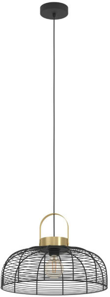 Indusztriális stílusú, fekete színű fém vázas függeszték fekete-sárgaréz színű fém búrával, E27-es foglalattal.