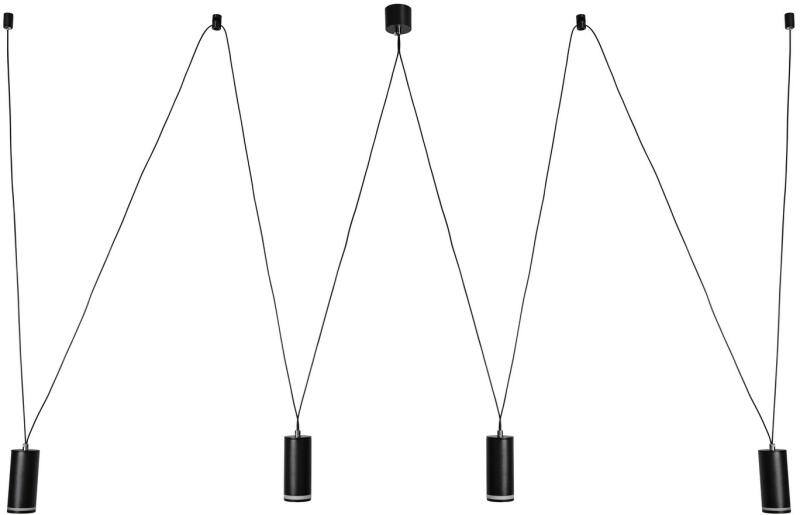 Rábalux 73038 Senobia Beltéri lámpa Függeszték fekete, fehér GU10 4X MAX 5, IP20 A Senobia négyes függeszték stílusos választás lehet modern nappalinkba, étkezőnkbe vagy hálószobánkba. Ez az állítható szélességű és magasságú modell alumíniumból készül, fekete színben. A henger formájú lámpafejeket fehér akrilbúrák egészítik ki, és a lámpa kisméretű, henge