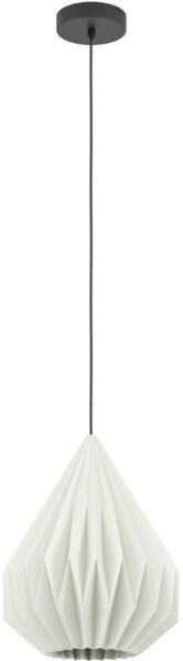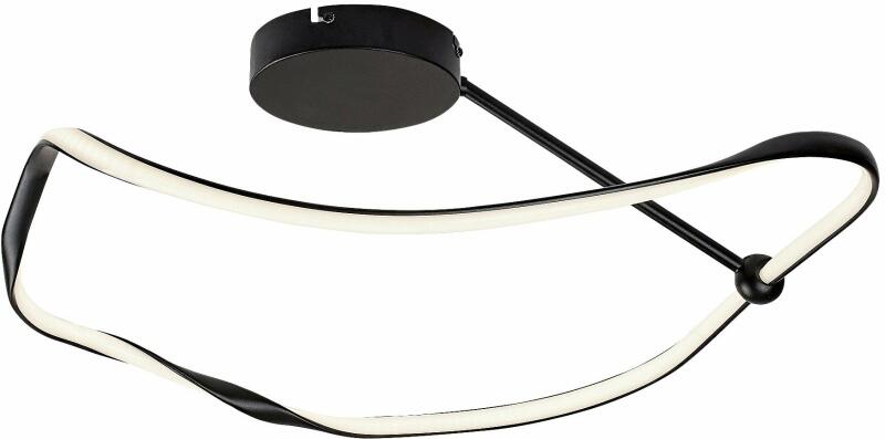 A modern stílusú Mirossi mennyezeti lámpa egyedi megjelenésével a nappali vagy a hálószoba berendezésének izgalmas darabja lehet. A fémből készült, fekete színű modellt fehér szilikonbúra egészíti ki, és a lámpa kisméretű, kerek dísztalp segítségével rögzíthető a mennyezetre. A dísztalpból kinyúló fekete tartórúd hullámzó vonalvezetésű, légies lámpafejet t