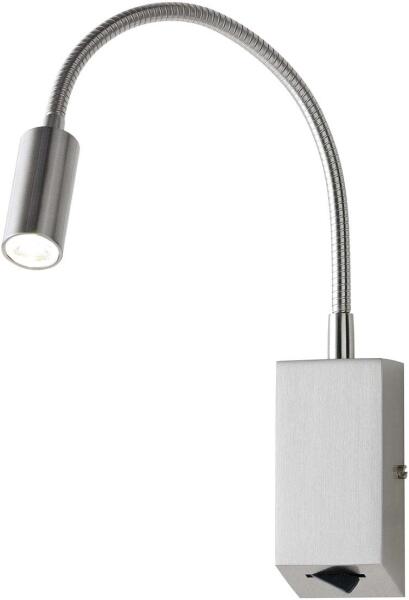 Praktikus, olvasókaros fali lámpa, szatinált nikkel színű fém vázzal, 35cm hosszú, flexibilis karral, a lámpatesten kapcsolóval. A lámpa beépített LED fényforrással rendelkezik.