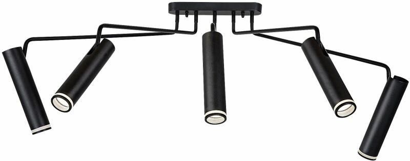 Rábalux 73040 Senobia Beltéri lámpa Mennyezeti lámpa fekete, fehér GU10 5x MAX 35, IP20 A modern Senobia ötös mennyezeti lámpa meghatározó darabja lehet a nappali, a hálószoba vagy a dolgozószoba berendezésének. A lámpa alumíniumból, fekete színben készül, és hosszúkás dísztalp segítségével rögzíthető a mennyezetre. A kis átmérőjű, henger formájú lámpafejek a
