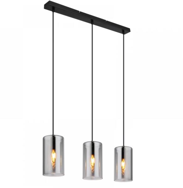 A BUTRANO függőlámpa rúd alakú fekete fémtesttel rendelkezik, ezüst színű fém akcentussal. A két elemet négy diszkrét fémrúd köti össze. A karosszéria felső részén található a süllyesztett izzótartó – ez a kialakítás tükröződésmentes világítást biztosít, a mellékelt GU10 LED-es izzó pedig kellemes meleg fehér fényt biztosít. A függőlámpa lineáris kial