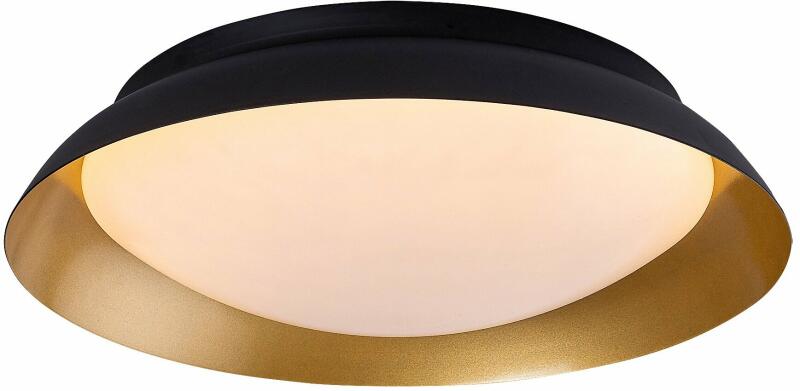 A modern stílusú Hafsa mennyezeti lámpát elsősorban a nappaliba vagy a hálószobába ajánljuk. A fémből, fekete-arany színkombinációban készült kerek modellt szélesen elterülő, tányérszerű lámpatest és fehér műanyagbúra alkotja. Meleg színeivel ez az elegáns lámpa jól beilleszthető azokba az enteriőrökbe, amelyek előnyben részesítik a fából és más természete
