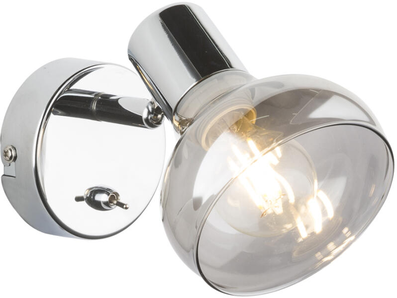 Spot, króm, üveg füstszínű, kapcsolóval, WxH:100x115, OH:135, Foglalat típusa:1xE14 40W 230V Használt feszültség: 230V Fényforrás teljesítménye (Watt): 40W Fényforrás foglalata: E14 Foglalatok száma: 1 Magasság: 115mm Szélesség: 100mm Szállítási idő: Átlagosan 1,5-2 hét, a visszaigazolástól függően.