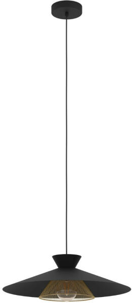 Vintage stílusú, fekete színű fém vázas függeszték fekete-sárgaréz színű fém búrával, E27-es foglalattal.