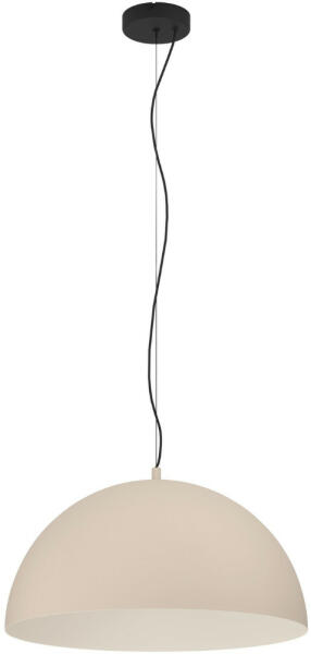 Fekete színű fém vázas függeszték homok színű fém búrával, E27-es foglalattal.