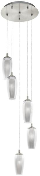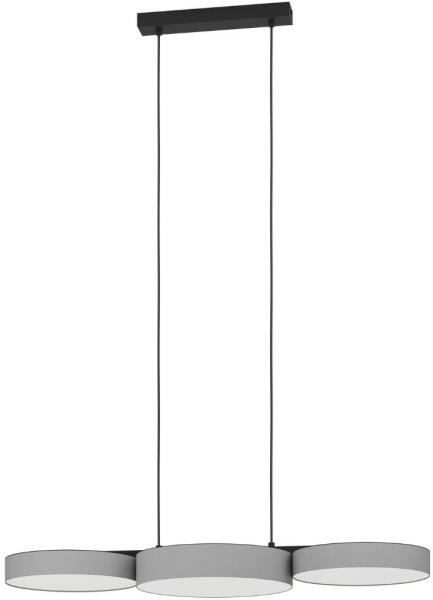 Fekete színű fém vázas függeszték szürke-fehér színű textil és műanyag búrával, 2700-6500K köztt szabályozható beépített led fényforrással. A lámpa egyéb funkciói: fényerőszabályzós, színhőmérséklet szabályzóval, aplikációval vezérelhető, színváltóval. A lámpa az EGLO connect. z ZigBee okosvilágítás család tagja. Bővebb információkért olvassák el