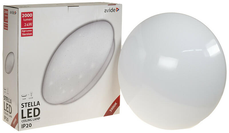 Avide LED Mennyezeti Lámpa Stella (Csillagos) 24W 380 x 110mm WW 3000K Az Avide ufo lámpák modern, beépített LED fényforrást tartalmaznak. Hálózatba kötés után azonnal használhatók. Lámpáink SMD (Surface mounted diode – felületre szerelt dióda) LED-ekkel vannak szerelve, mely a legmodernebb megoldások egyike. Az SMD technológiára jellemző a nagyobb fényszórás, így szél