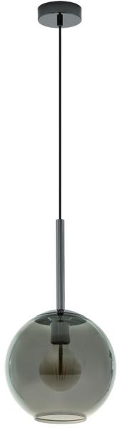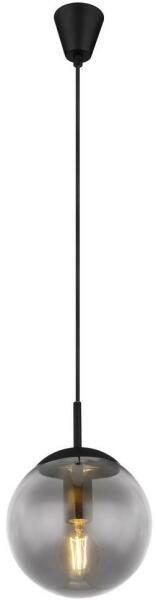 Függeszték fém matt fekete, füstszínű üveg, fekete PVC kábel, ø: 200mm, M: 1200mm, fényforrás nélkül szállítva 1x E27 60W 230V