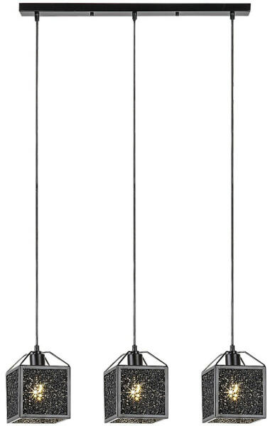 Rábalux 72219 Samilo Beltéri lámpa Függeszték fekete, fekete E27 3x MAX 40, IP20 A modern stílusú Samilo hármas függeszték nappalink, étkezőnk vagy hálószobánk berendezésének különleges darabja lehet. A fémből készült, fekete színű lámpa a Rábalux saját tervezésű modellje, amelyet a kocka formájú lámpafejek és az alumíniumhabból készült egyedi búrák tesznek