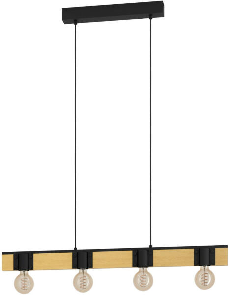 Loft stílusú, fekete-barna színű fém és fa függeszték E27-es foglalattal. A lámpa dekor fényforrással mutat a legjobban, ami nem tartozék.