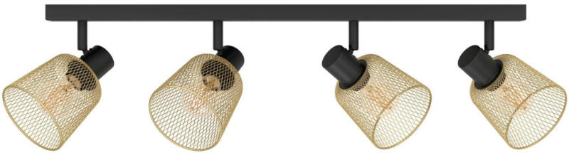 Fekete színű fém vázas mennyezeti spot lámpa sárgaréz színű fém búrával, E27-es foglalattal. A lámpa egyéb tulajdonsága(i): állítható fejű lámpa.