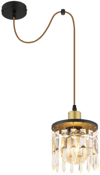 Függeszték 40W, E27 foglalat, Jellemző anyag: fém, Jellemző szín: sárgaréz Matt Matt, nem tartalmaz fényforrást, 230V, Méret: 150mm x 1200mm (átmérő x magasság), 15533H Függeszték sárgaréz matt lámpa, fa fekete, üvegkristályok, kábeltextil barna, állítható magasságú, ø: 150mm, H: 1200mm, fényforrás nélkül szállítva 1x E27 40W 230V