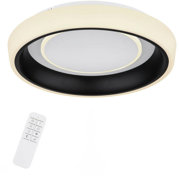 Mennyezeti Lámpa 50W, LED, 3300lm, Jellemző anyag: fém, Jellemző szín: fekete matt, 230V, Méret: 500mm x 95mm (átmérő x magasság), 48272-46B Mennyezeti fém fekete matt, akril fekete, opál, szabályozható, fali kapcsolóval több fokozatban, színek rögzíthetők, memória funkció, éjszakai fény, távirányító, , ø: 500mm, H: 95mm, LED 50W 230V, 130-3300lm, CCT 3000-6500K