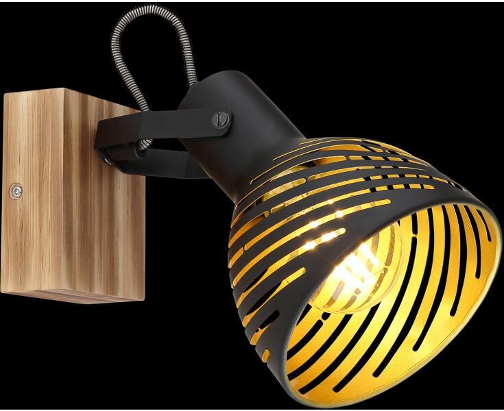 A Lenna sorozat ezen spotja a sötétbarna fából és fekete fémből készült stílusos kialakításának köszönhetően csodálatosan illeszkedik a legkülönbözőbb lakberendezési stílusok hangulatába. Az elforgatható, vonalas mintázatú, belülről aranyszínűre színezett fém ernyőt egy kengyel rögzíti a sötétbarna fához. Egy Ön által választott E27-es izzóval működteth